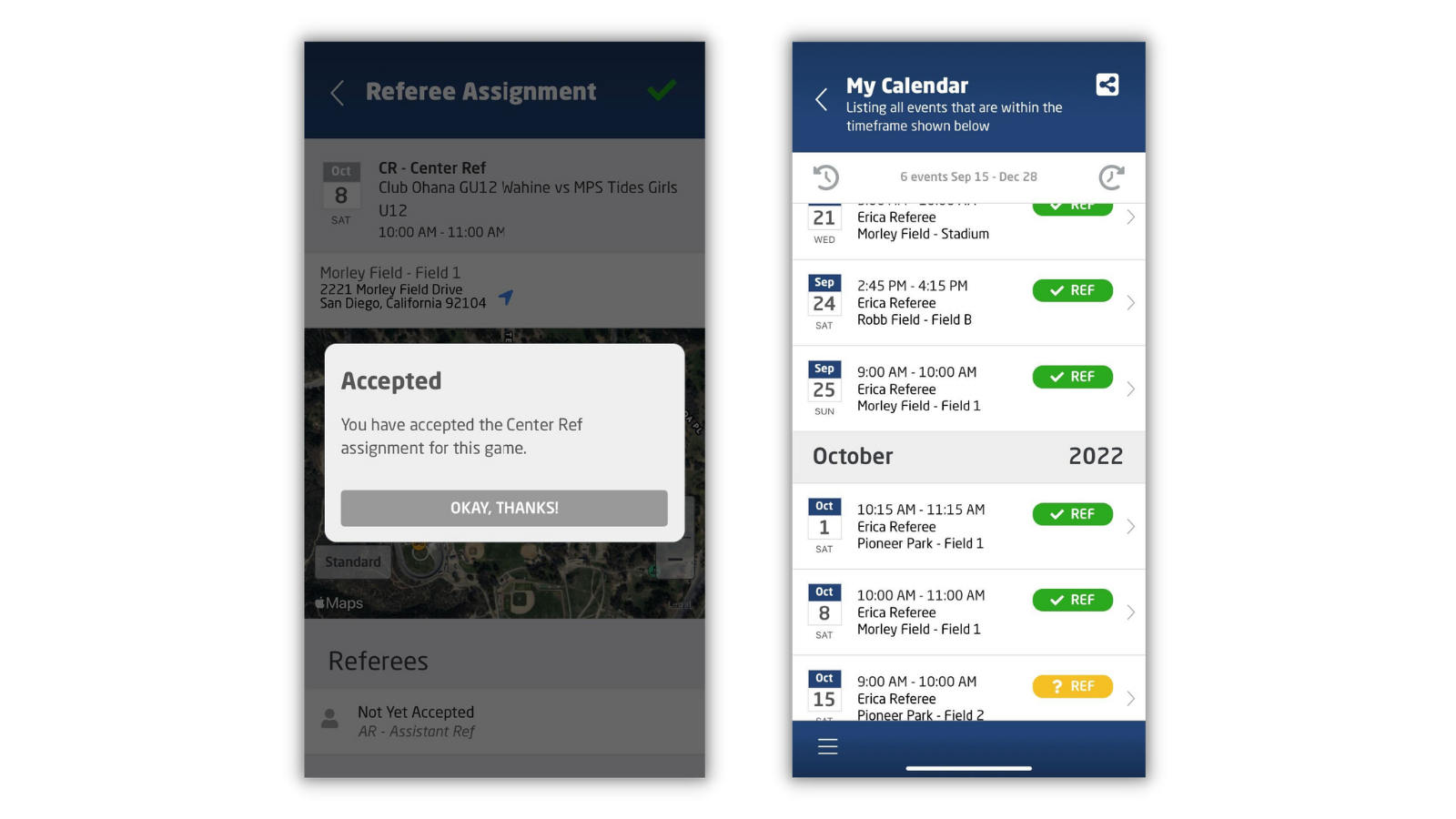 Admins are busy enough wrangling players and teams without having to worry about managing officials. The answer is ensuring officials have the tools to manage their assignments on their own time. Your organization’s mobile app should allow referees to view and manage their own assignments, as well as communicate with their crew members.